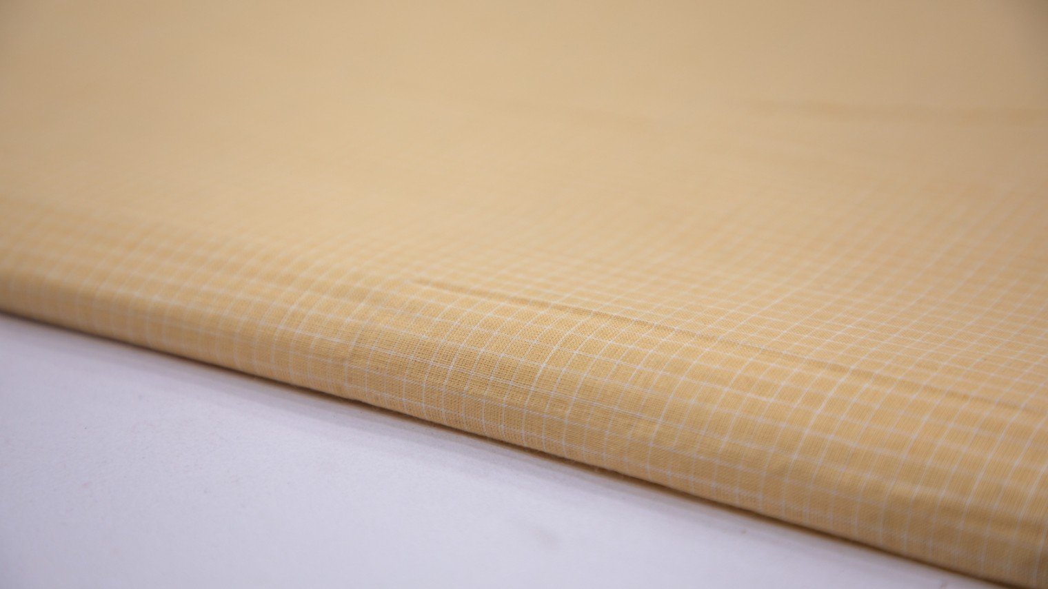 Apricot Beige Color South Cotton Handloom With Self White Color Chex Weave 42 Inches (107 CMS) Width Fabric Material for Outfit Patterns Such as; Choli, Blouse, Pant, Plazzo, Gown, Female Shirt, Kurta, Kurti, & Salwar. |