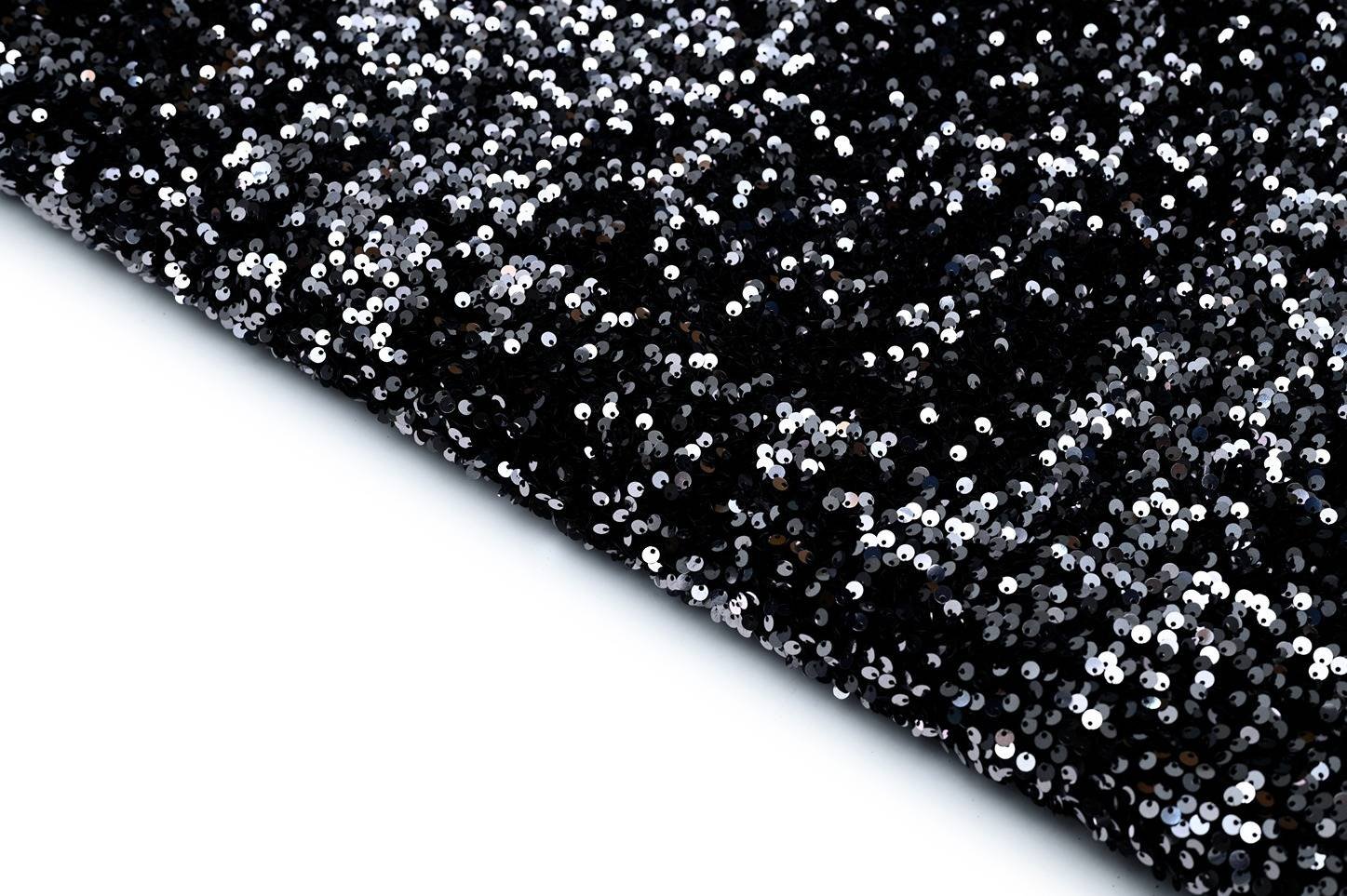 BLACK COLOR VELVET ALLOVER CRUSH SILVER SEQUINS PATTERN EMBROIDERY WORK FABRIC
