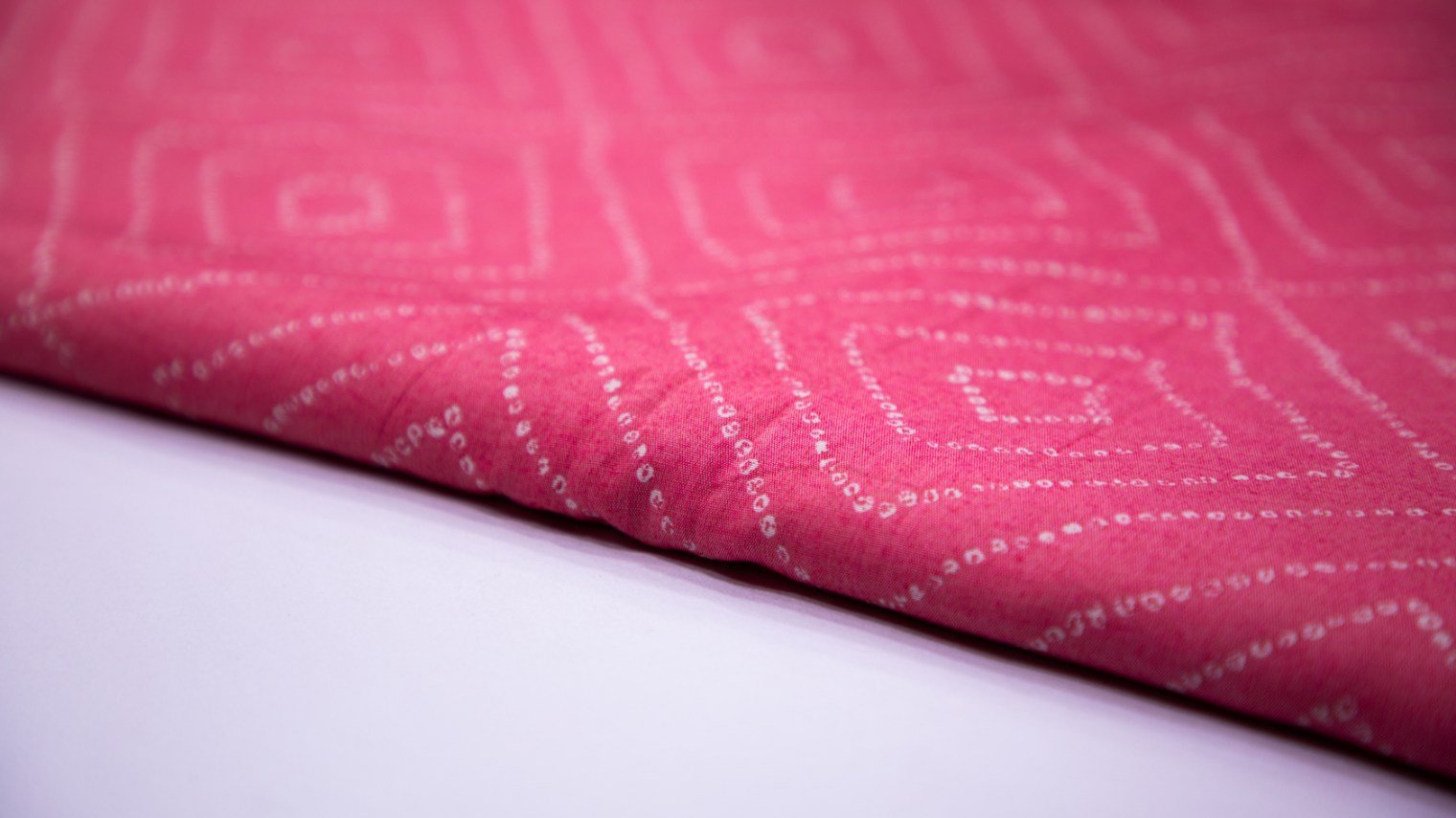 BLUSH PINK COLOR RAYON WHITE BANDHANI BOX PATTERN PRINTED 80 TO 100 GMS PER UNIT WEIGHTED FABRIC MATERIAL FOR SEVERAL OUTFIT PATTERNS FOR EXAMPLE; TOP, TUNIC, PANT, KOTI, JACKET, CROP TOP, FEMALE SHIRT, & MANY MORE. |