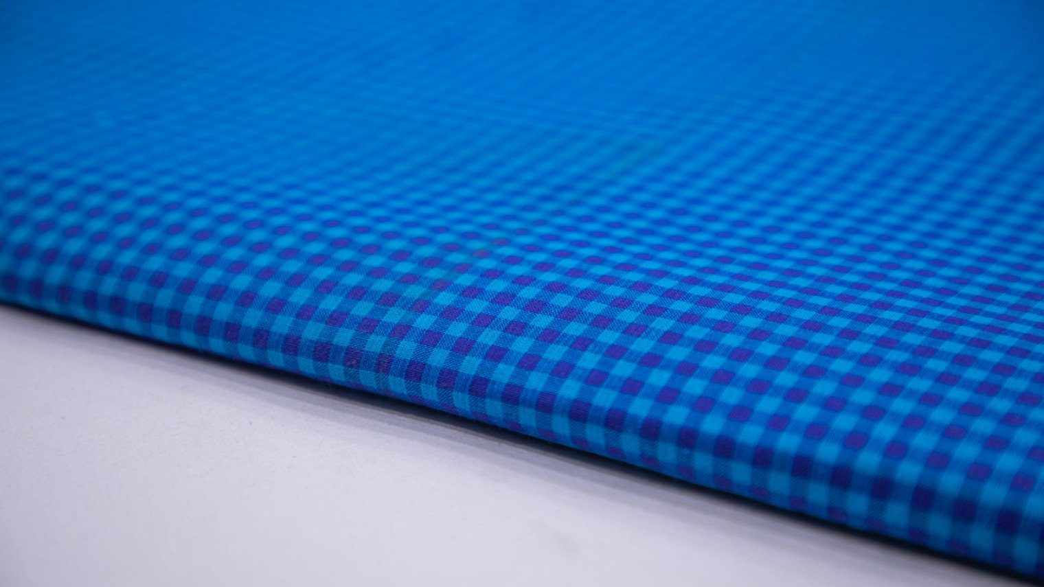 Bright Firozi Blue Color South Cotton Handloom Blue Criss Cross Chex Weave Fabric - 4295