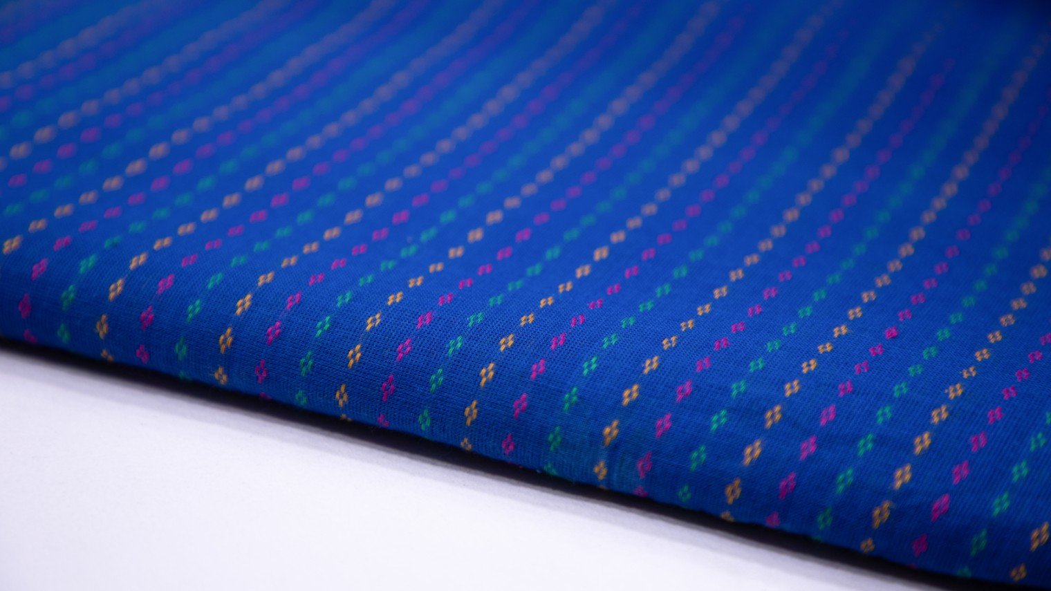 Bright Indigo Blue Color South Cotton Handloom Material With Multi weave Stripes Pattern 107 CMS (42 Inches) Width Fabric Material for, Plazzo, Salwar, Kurta, Kurti, Jacket, Koti, Suit, Pant, Gow, & Choli.