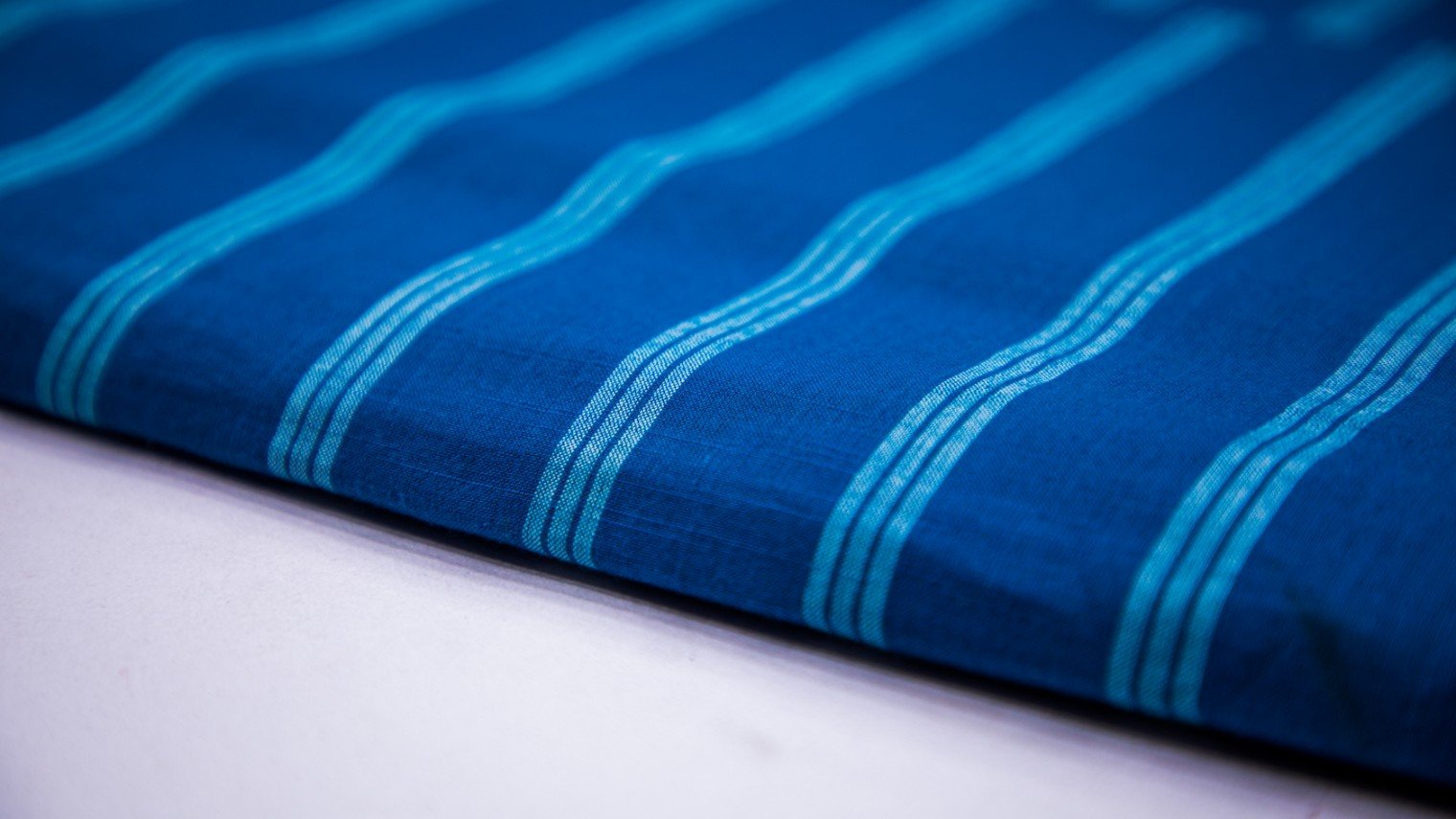 Bright Olive Green Color South Cotton Handloom With Blue Stripes Weave Print 42 Inches (107 CMS) Width Fabric Material for Different Outfit Patterns Like, Gown, Choli, Plazzo, Lehenga, Salwar, Female Shirt, Top, Koti, Jacket, etc. |