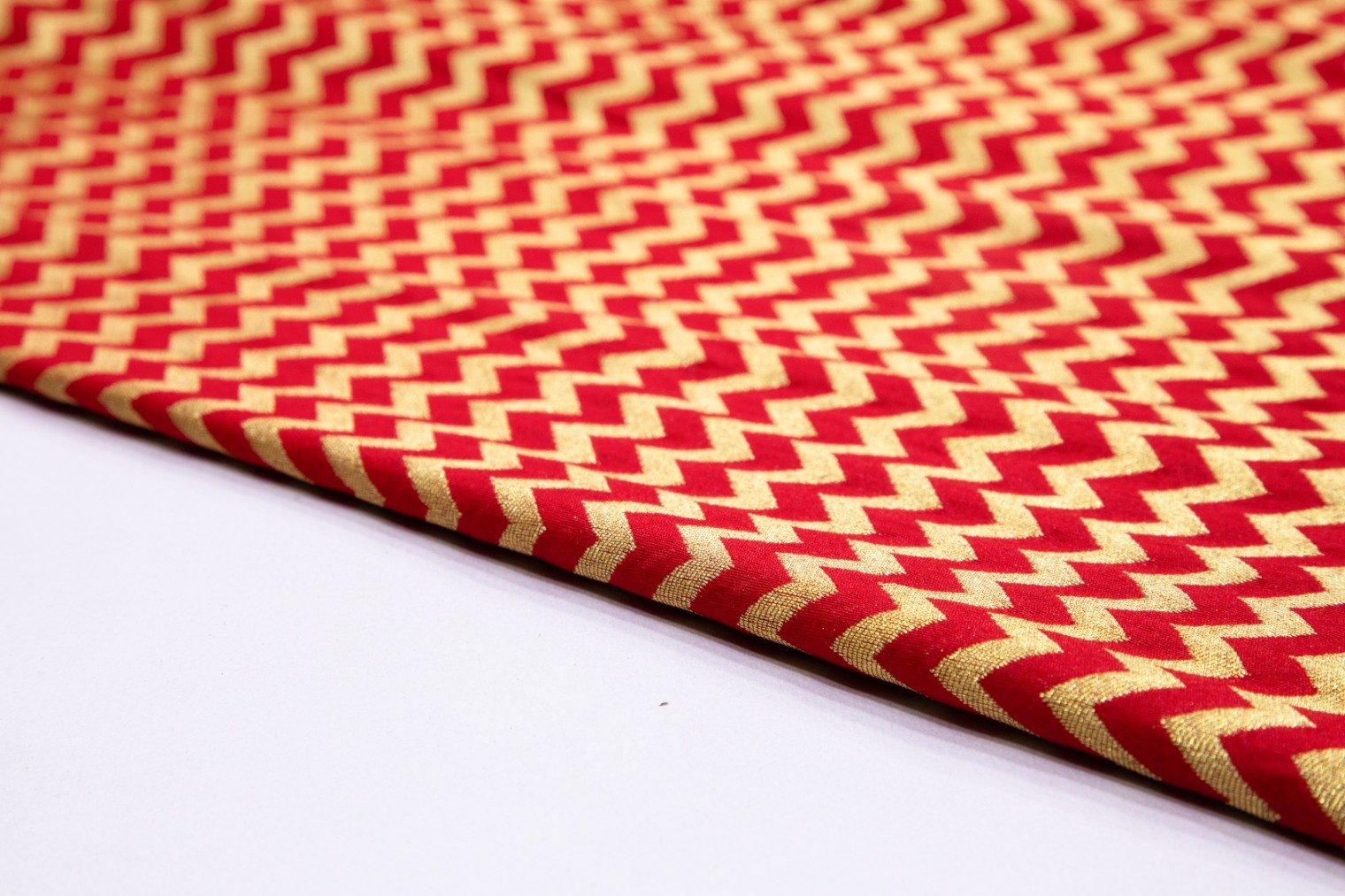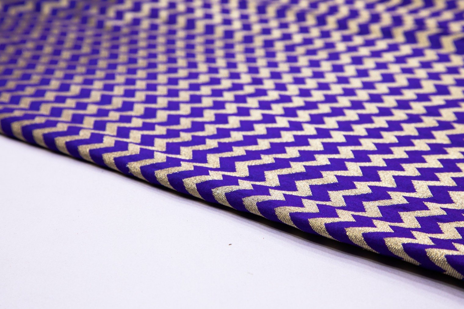 BRIGHT VIOLET PURPLE COLOR GOLD ZARI ZIG ZAG PURE SILK BROCADE