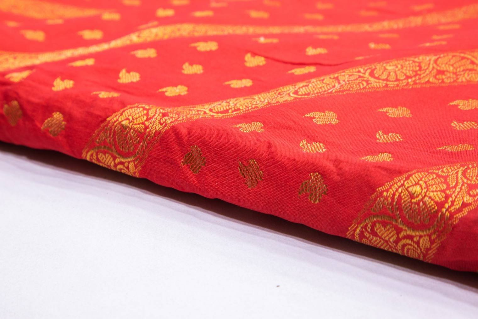 CHERRY RED COLOR COPPER LEHERIYA PATTERN SILK BROCADE