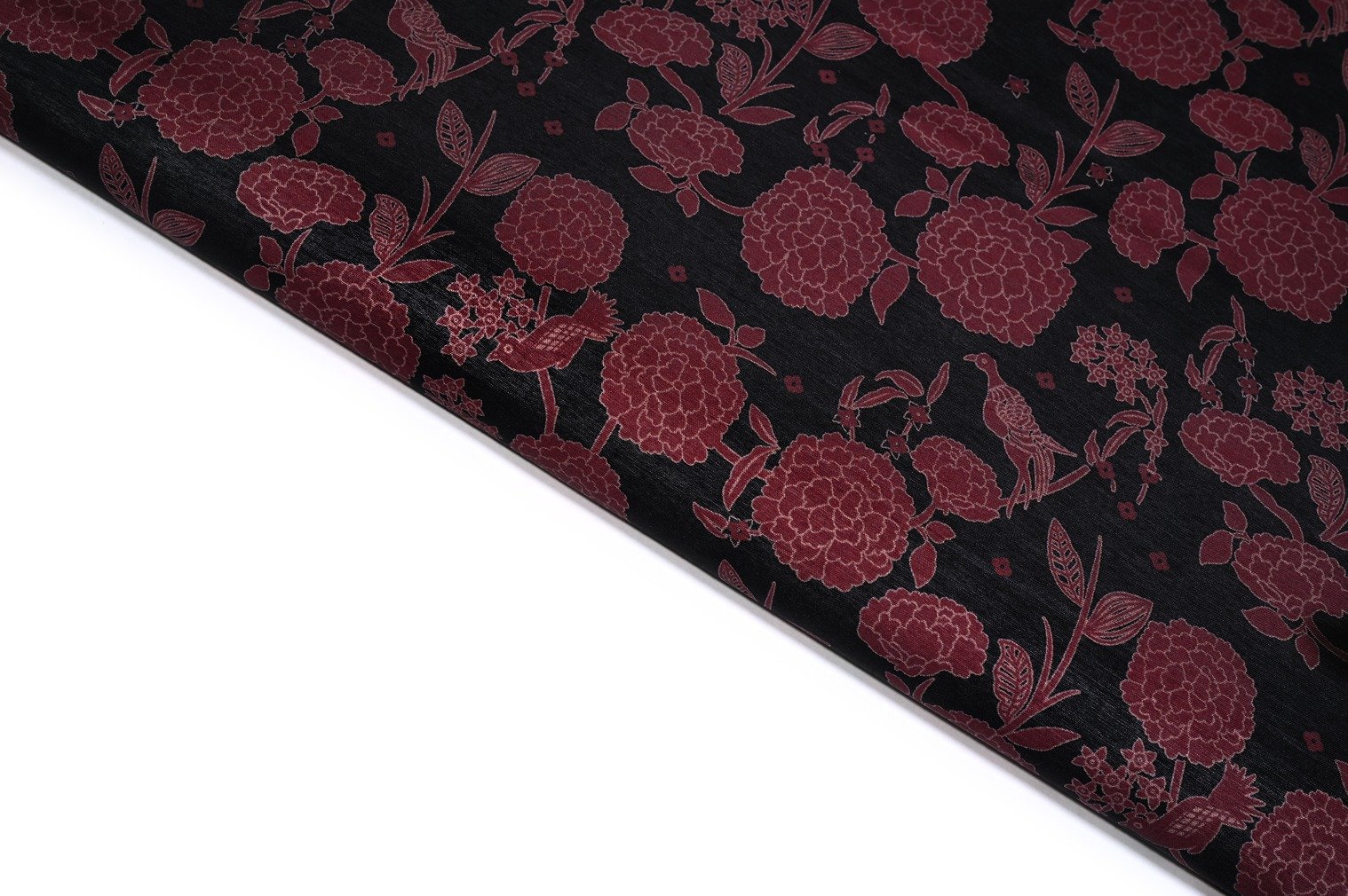 COIL BLACK COLOR PAISLEY WITH FIGURE MOTIVE PATTERN MUSLIN SILK PRINT FABRIC 10604
