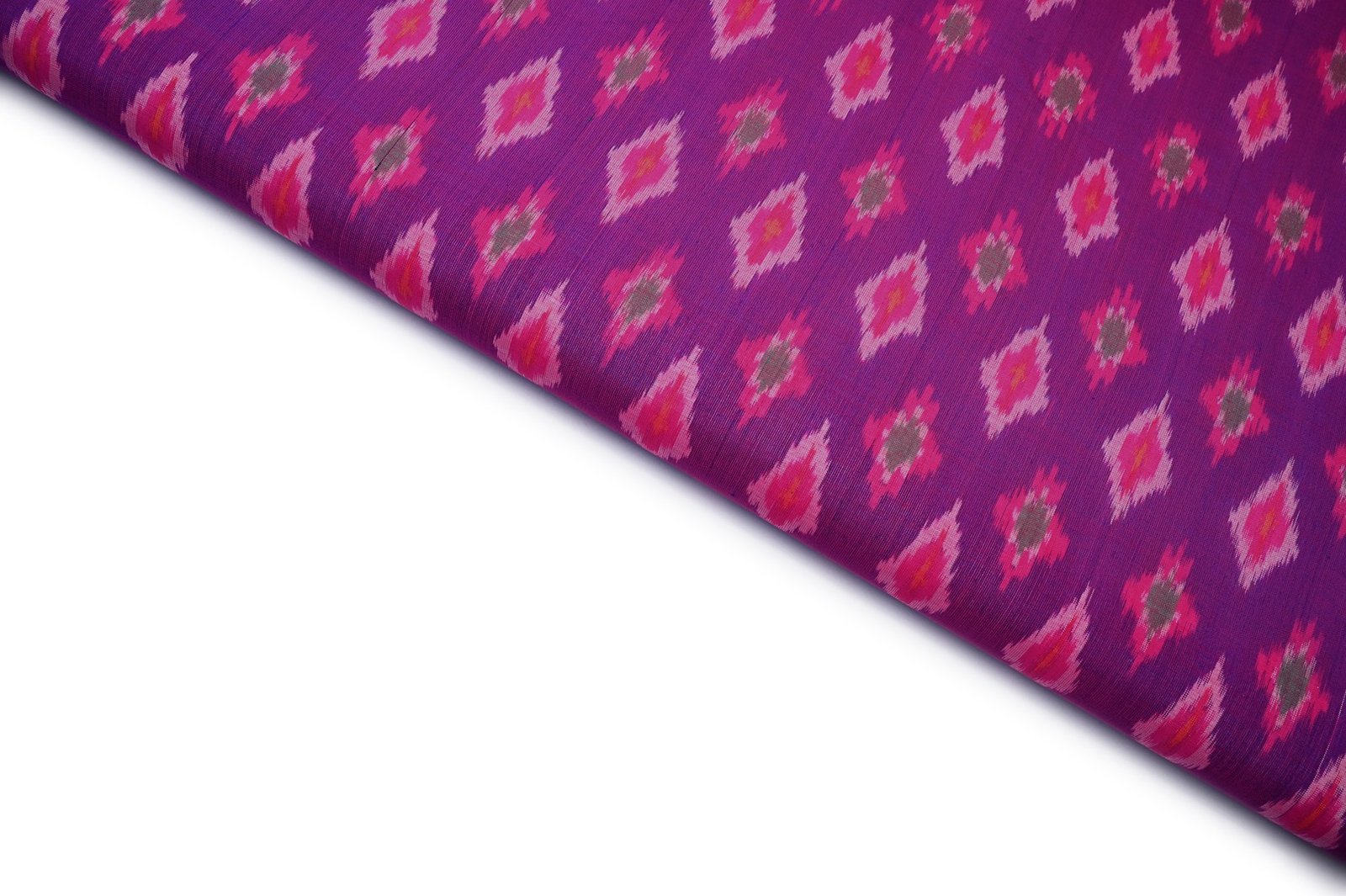 DEEP MAGENTA PINK COLOR GEOMETRIC HANDLOOM WEAVE MOTIVE MERCERISE SILK IKKAT FABRIC
