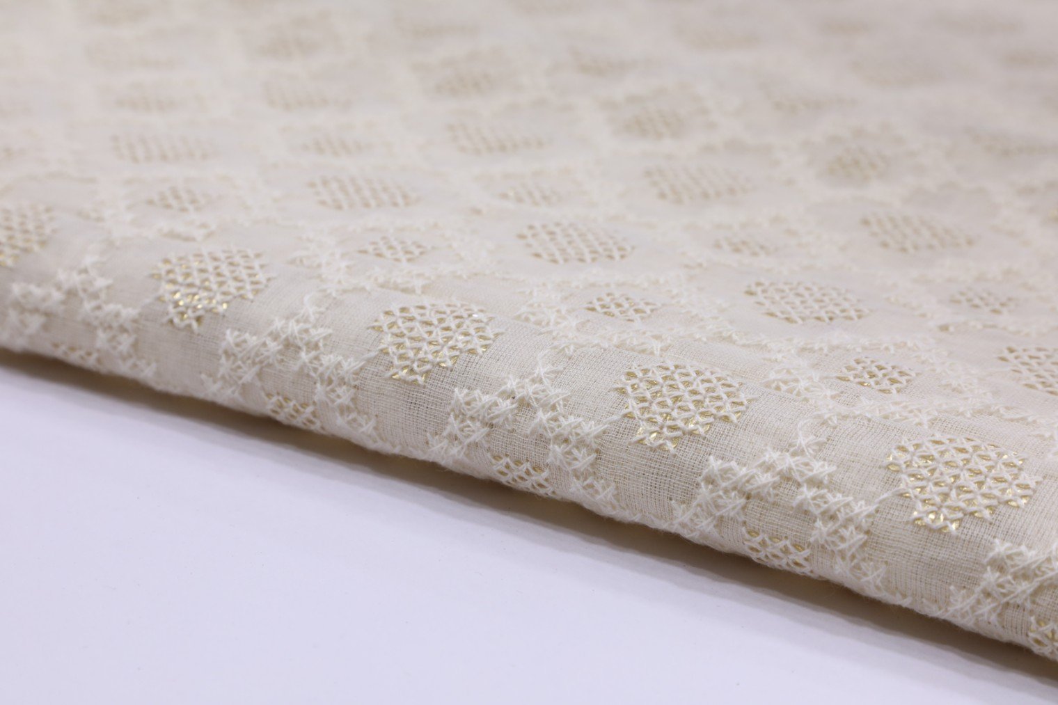 OFFWHITE COLOR DIABLE MUSLIN THREAD WORK MOMOTIF TIVE EMBROIDERY FABRIC 2497 OFF WHITE