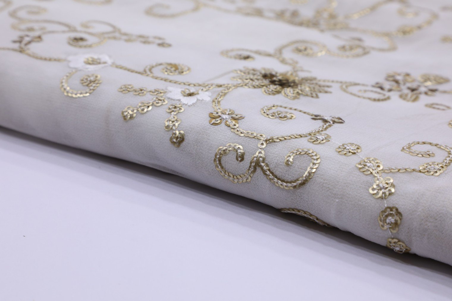 OFF WHITE COLOR CHINON ALLOVER MAT GOLD & SILVER SEQUENCE HEAVY ALLOVER WORK 2423 OFF WHITE