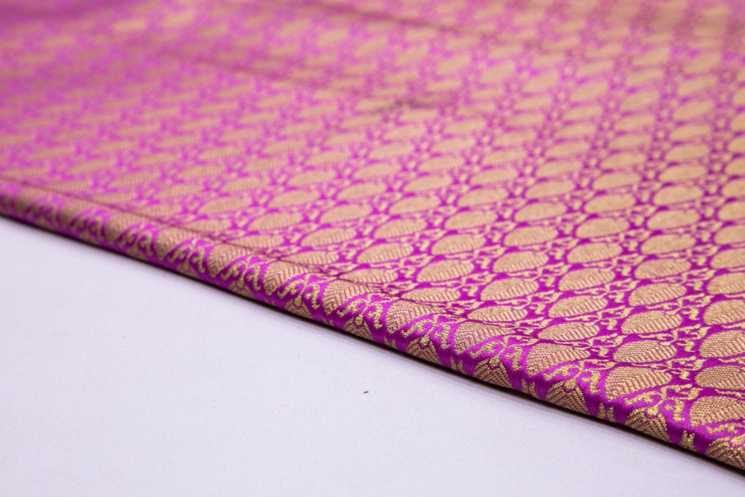 FEROZI BLUE COLOR COPPER LEAF CHAIN PURE SILK KINKHAB BROCADE FABRIC