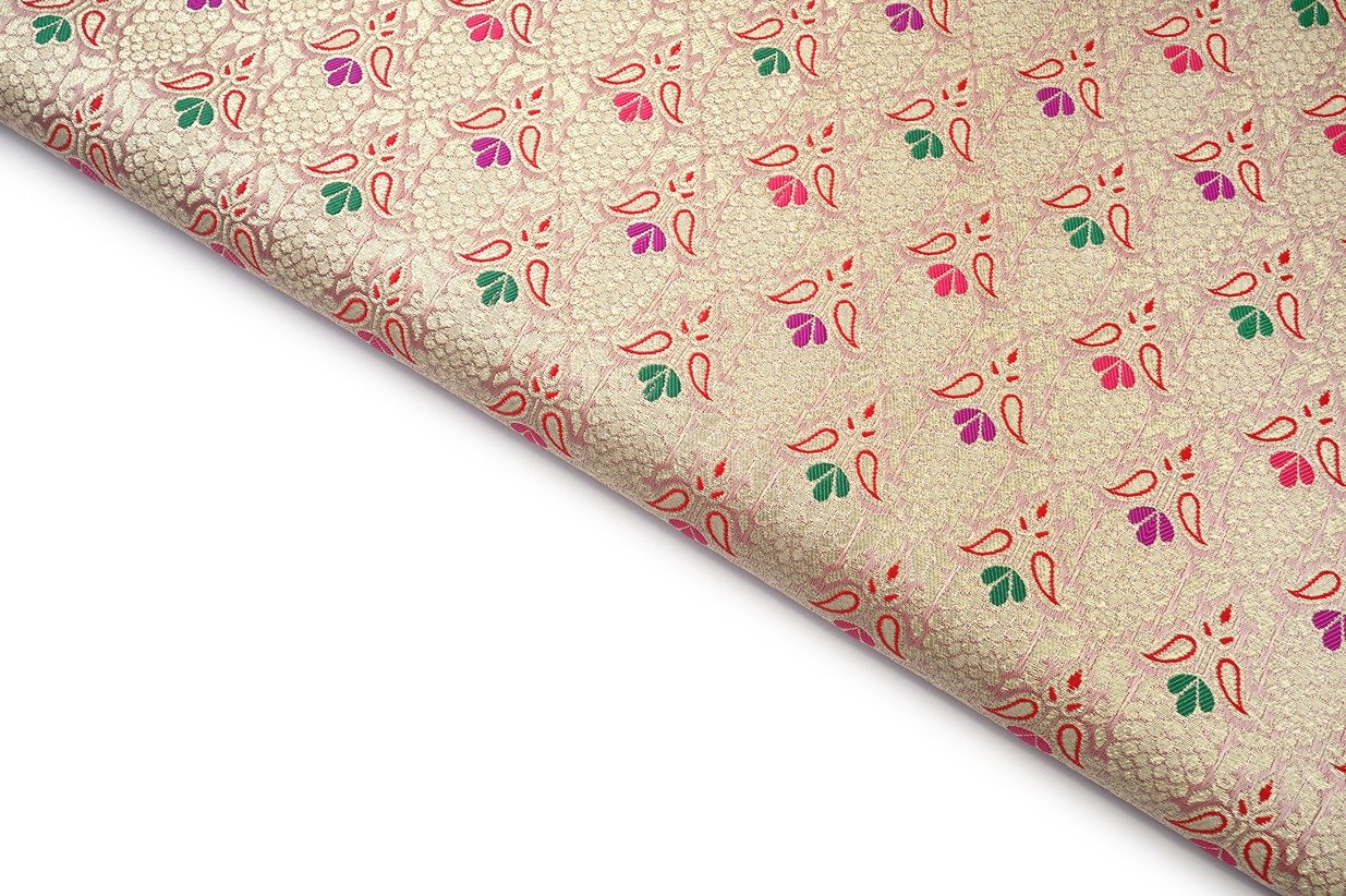 FRUIT PINK COLOR ANTIQ GOLD ZARI WITH RESHAM WEAVE PATTERN PORY HANDLOOM SILK BROCADE FABRIC