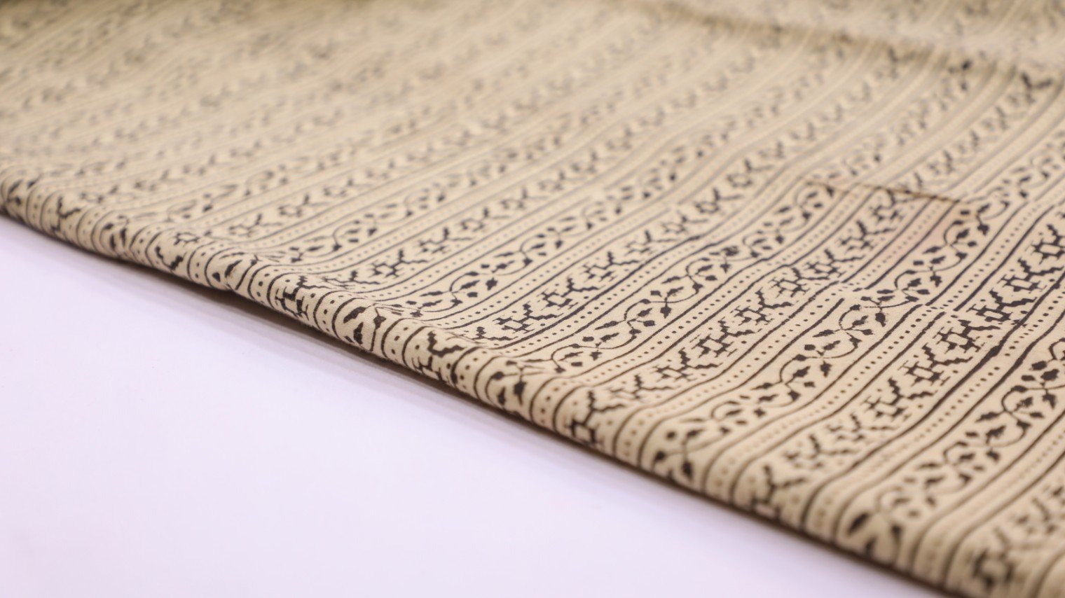 GAMTHI CREAM COLOR BLACK GEOMETRIC LACE PATTERN COTTON HAND BLOCK PRINT