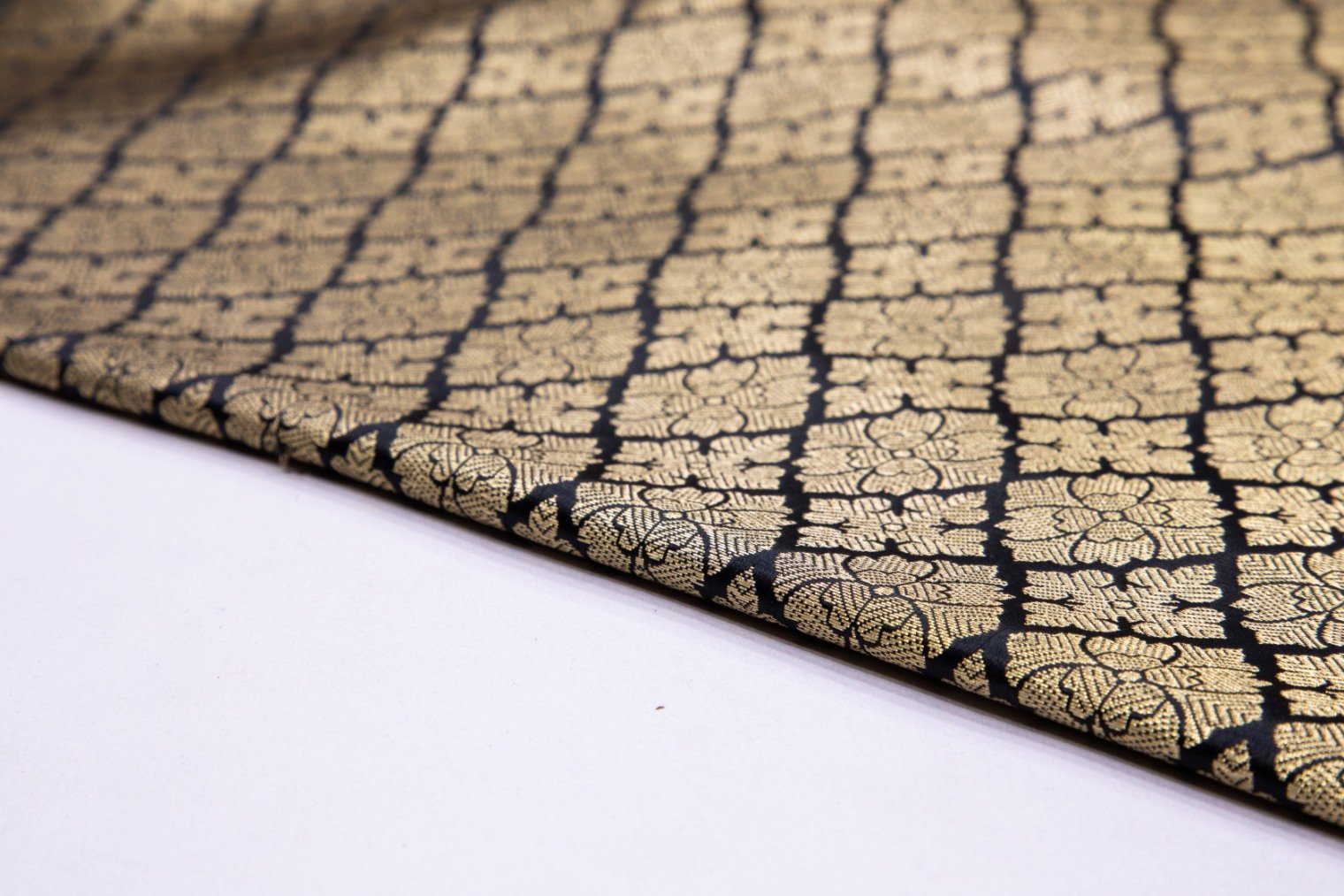 DIABLE OFFWHITE COLOR CHANDERI SILK COPPER CHAIN PATTERN BROCADE FABRIC 2478 OFF WHITE