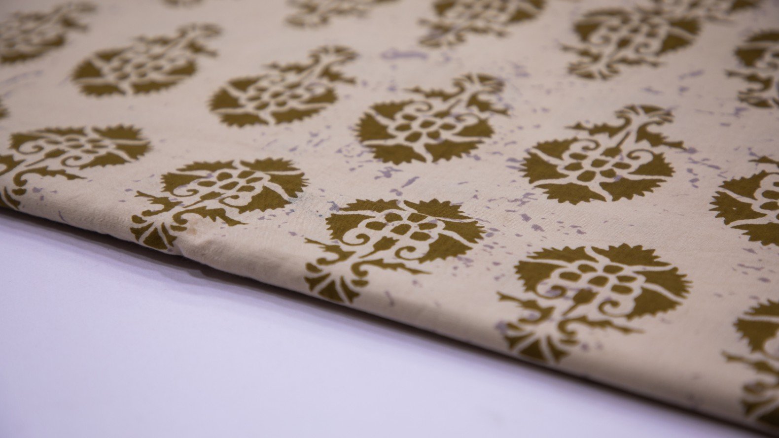 NATURAL CREAM COLOR DHABU COTTON GREEN TONE MOTIF HAND BLOCK PRINT
