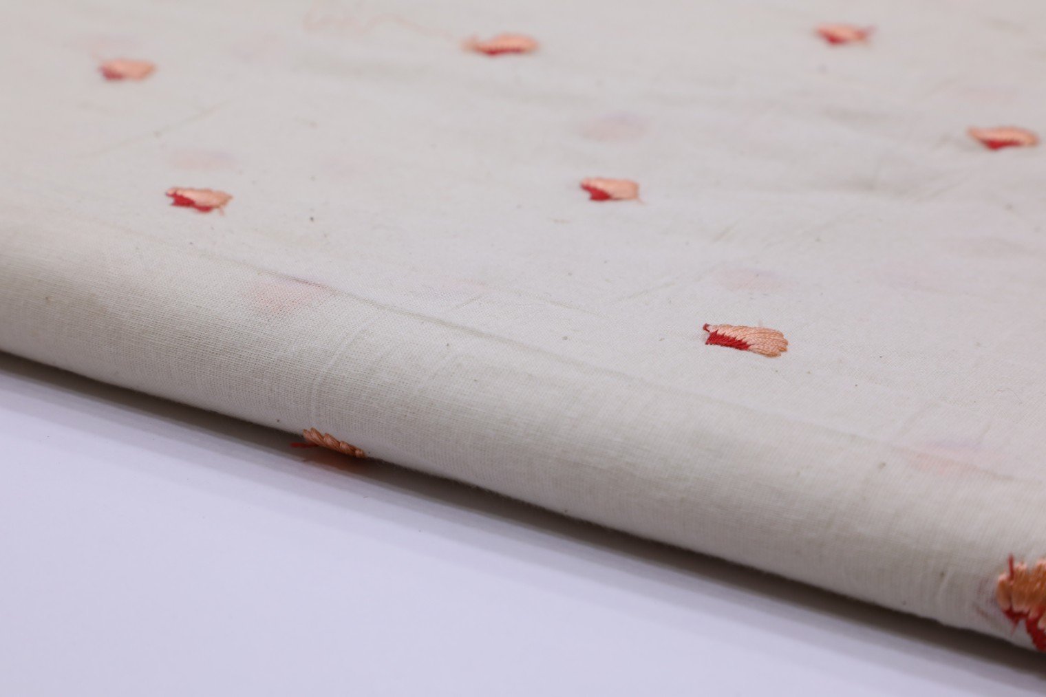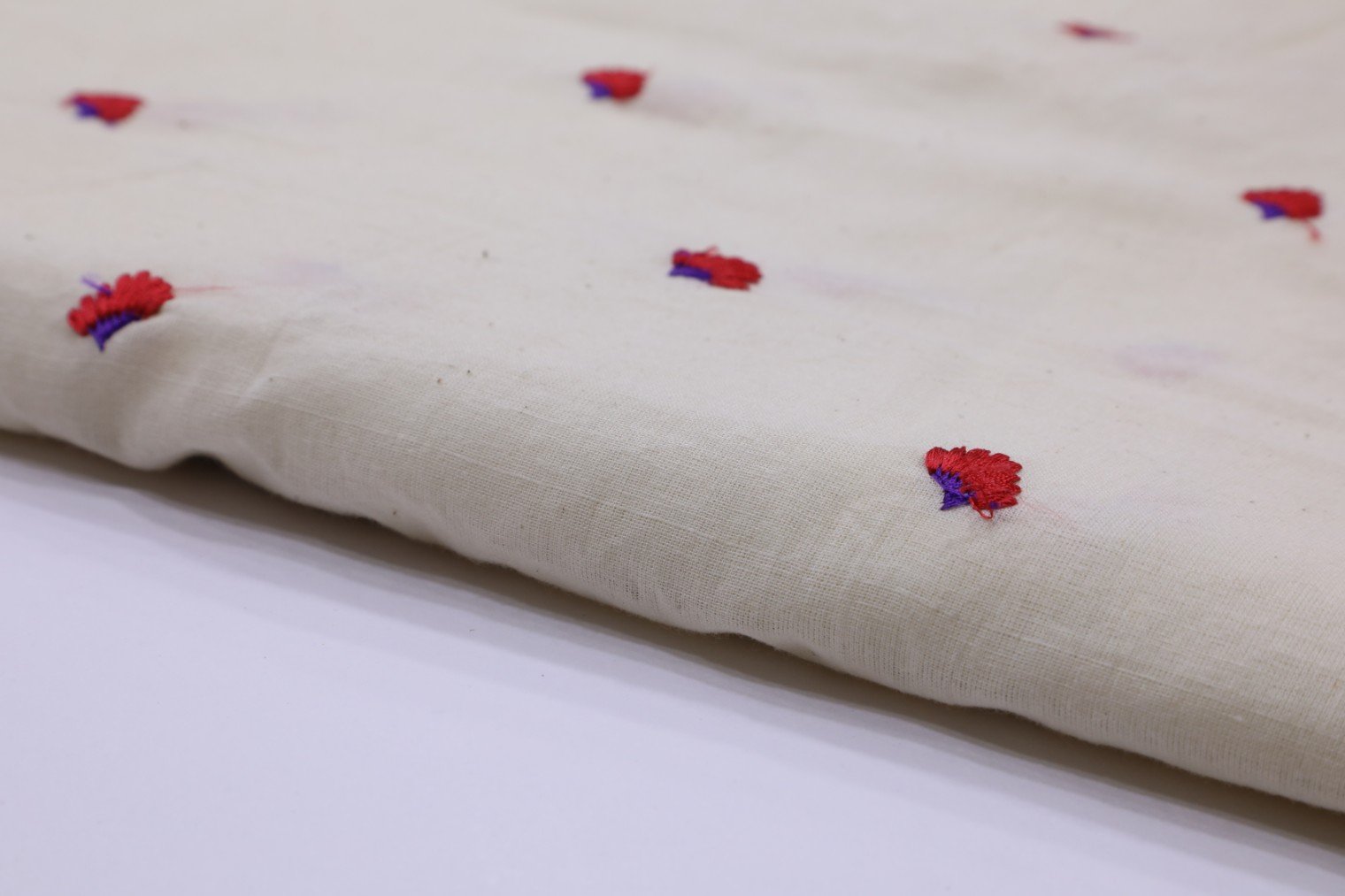 OFFWHITE COLOR COTTON RED THREAD WORK MOTIF FABRIC 2451 OFF WHITE