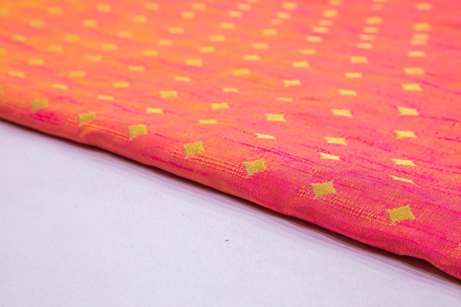 ORANGE TWOTONE COLOR GOLD ZARI MOTIF SLUB BROCADE