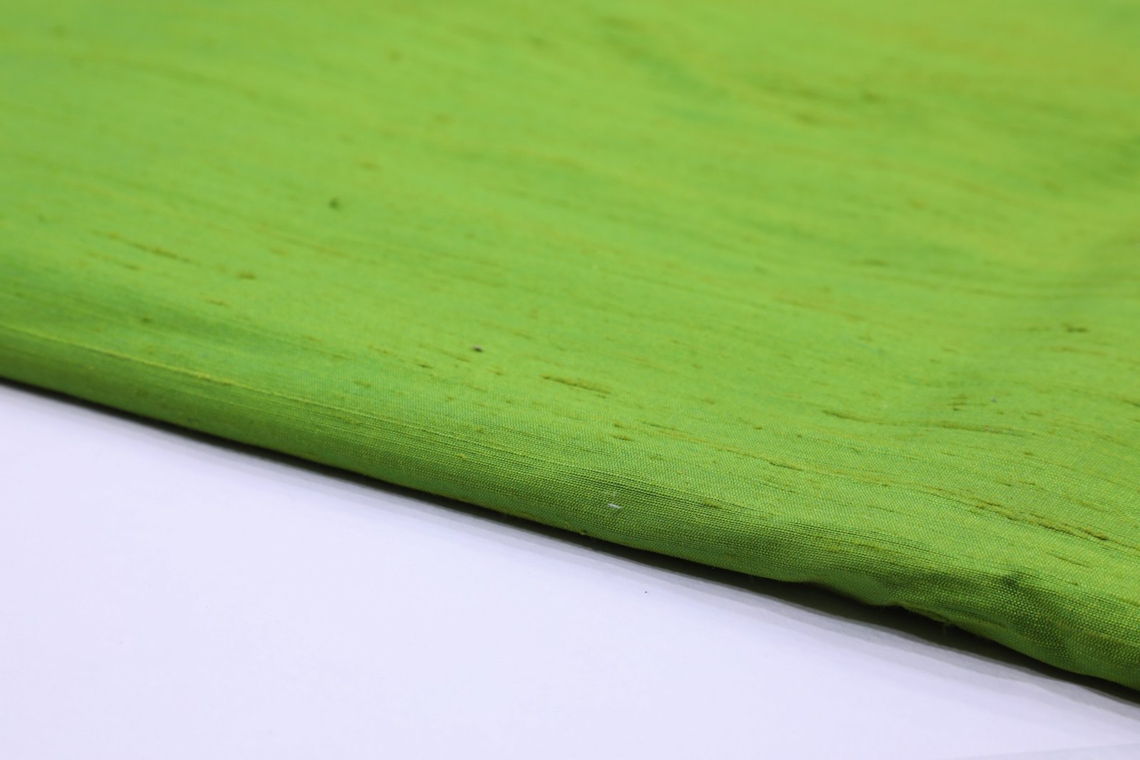 PARROT GREEN COLOR TWOTONE SELF TEXTURE PURE 100GMS RAWSILK FABRIC