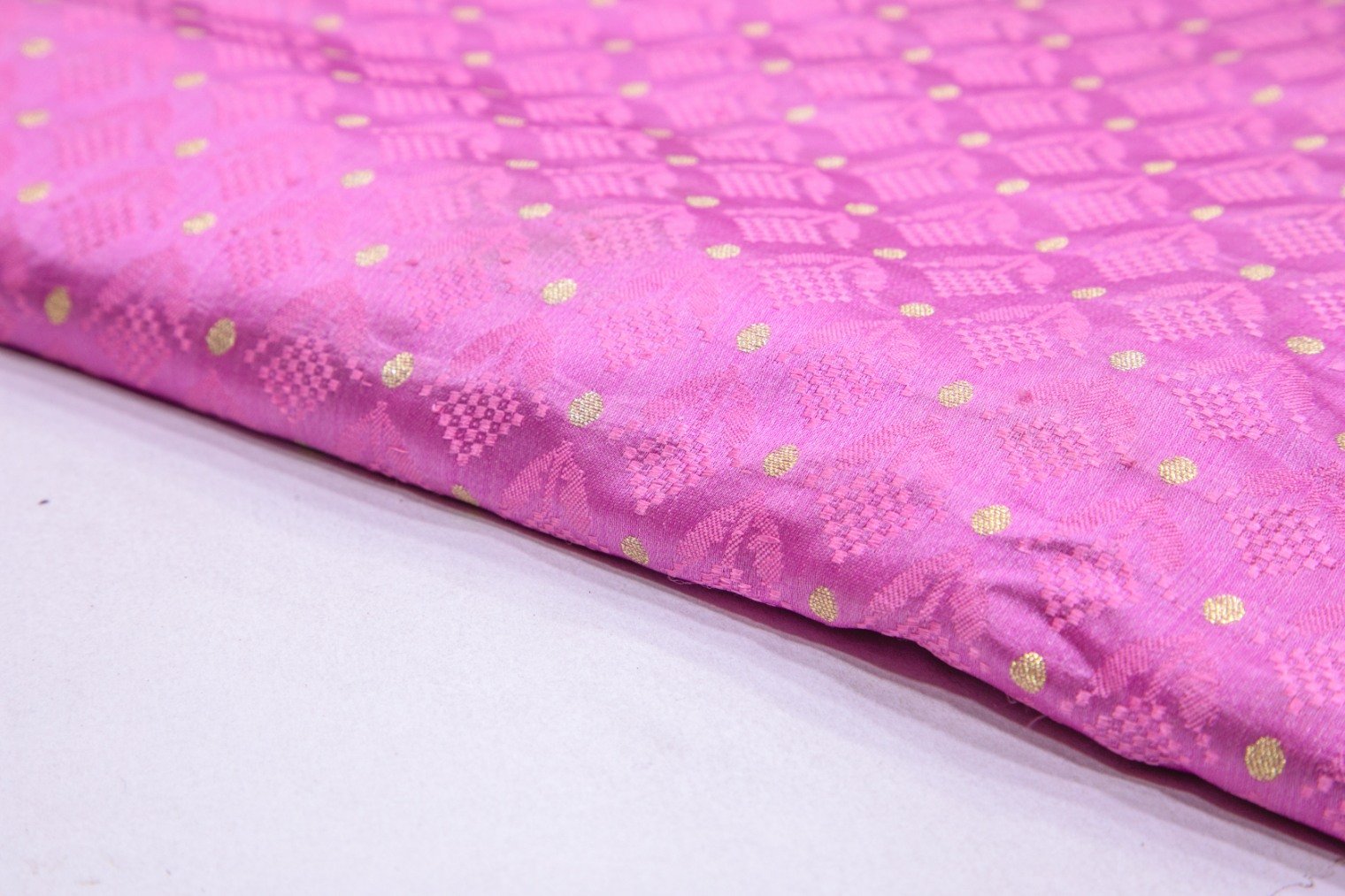 PASTEL PINK COLOR SELF MOTIF PURE SILK KINKHAB BROCADE FABRIC