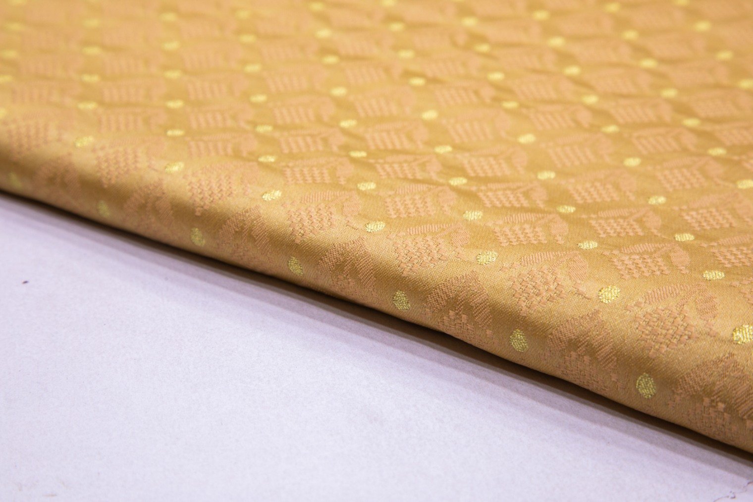 BEIGE COLOR DHUPION SILK GOLD ZARI & SEQUINS MOTIF WORK FABRIC 2475 BEIGE