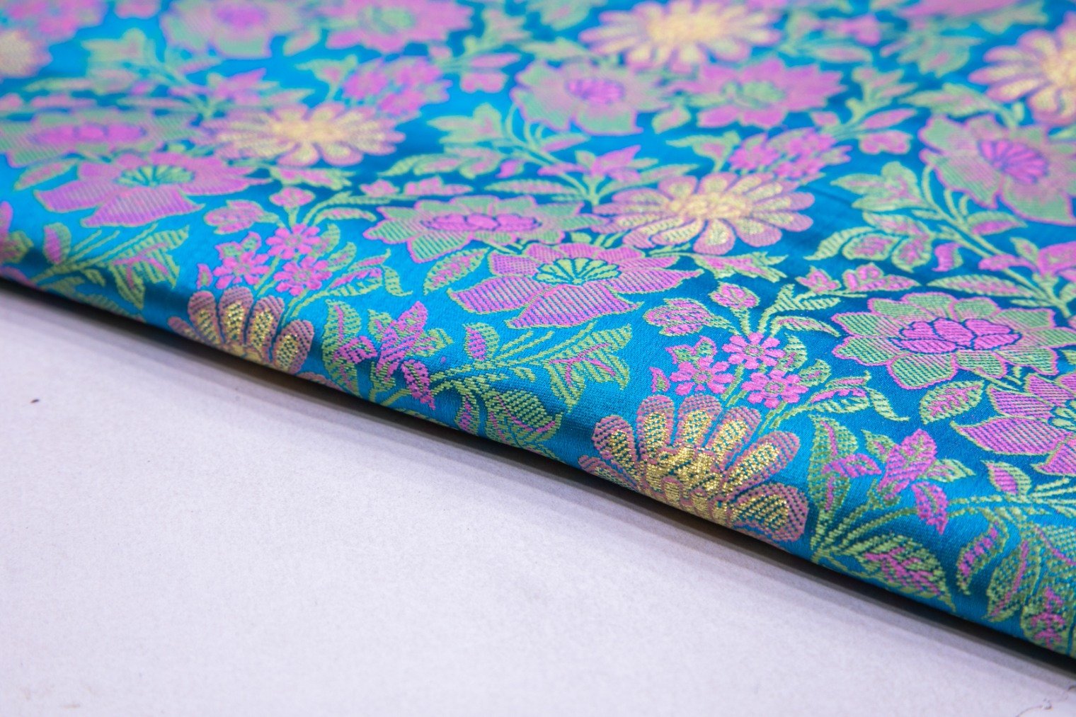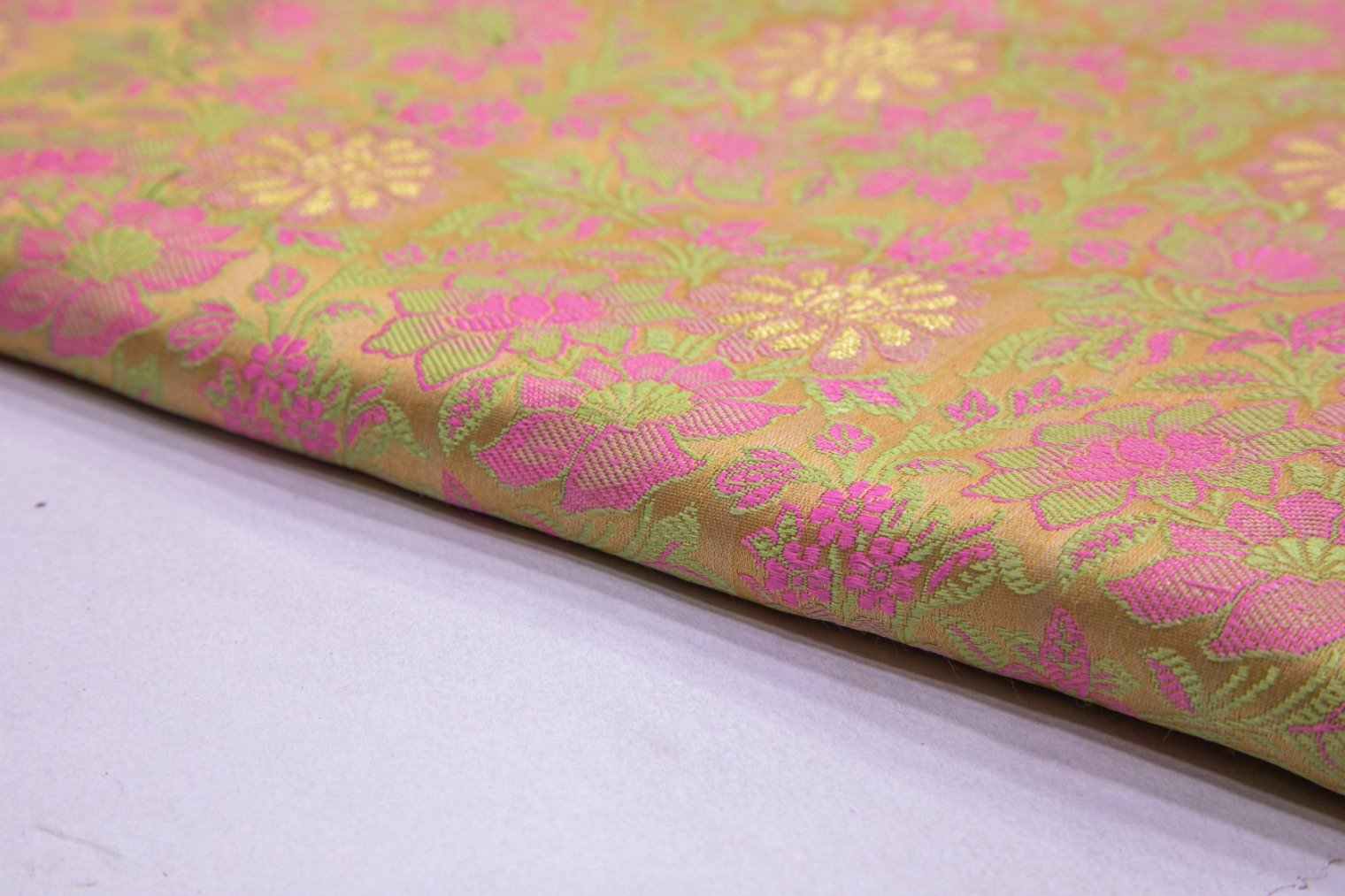 SILKY BEIGE COLOR GOLD MOTIF FLORAL ALLOVER PATTERN PURE SILK BROCADE