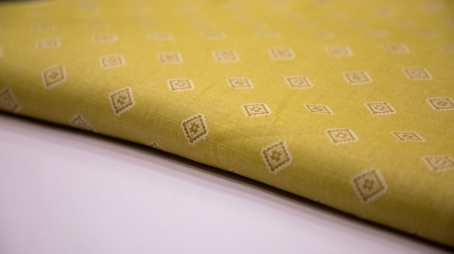 SUGAR COOKIE YELLOW COLOR TEXTURE RAYON GEOMETRIC CREAM MOTIF SCREEN PRINT 40 TO 80 GMS PER UNIT WEIGHTED FABRIC MATERIAL FOR; BLOUSE, CHOLI, CROP TOP, GOWN, JACKET, KURTA, KURTI, SALWAR, SUIT, TOP, TUNIC, ETC. |