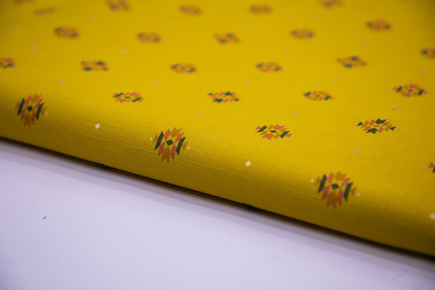 Sunflower Yellow Color Cotton Flex Geometric Motif Screen Print Fabric 42 Inches (107 CMS) Width Fabric Material for Blouse, Choli, Crop Top, Gown, Jacket, Kurta, Kurti, Salwar, Suit, Female Shirt, Skirt, Top, Tunic, Koti, Pant, & Plazzo. |