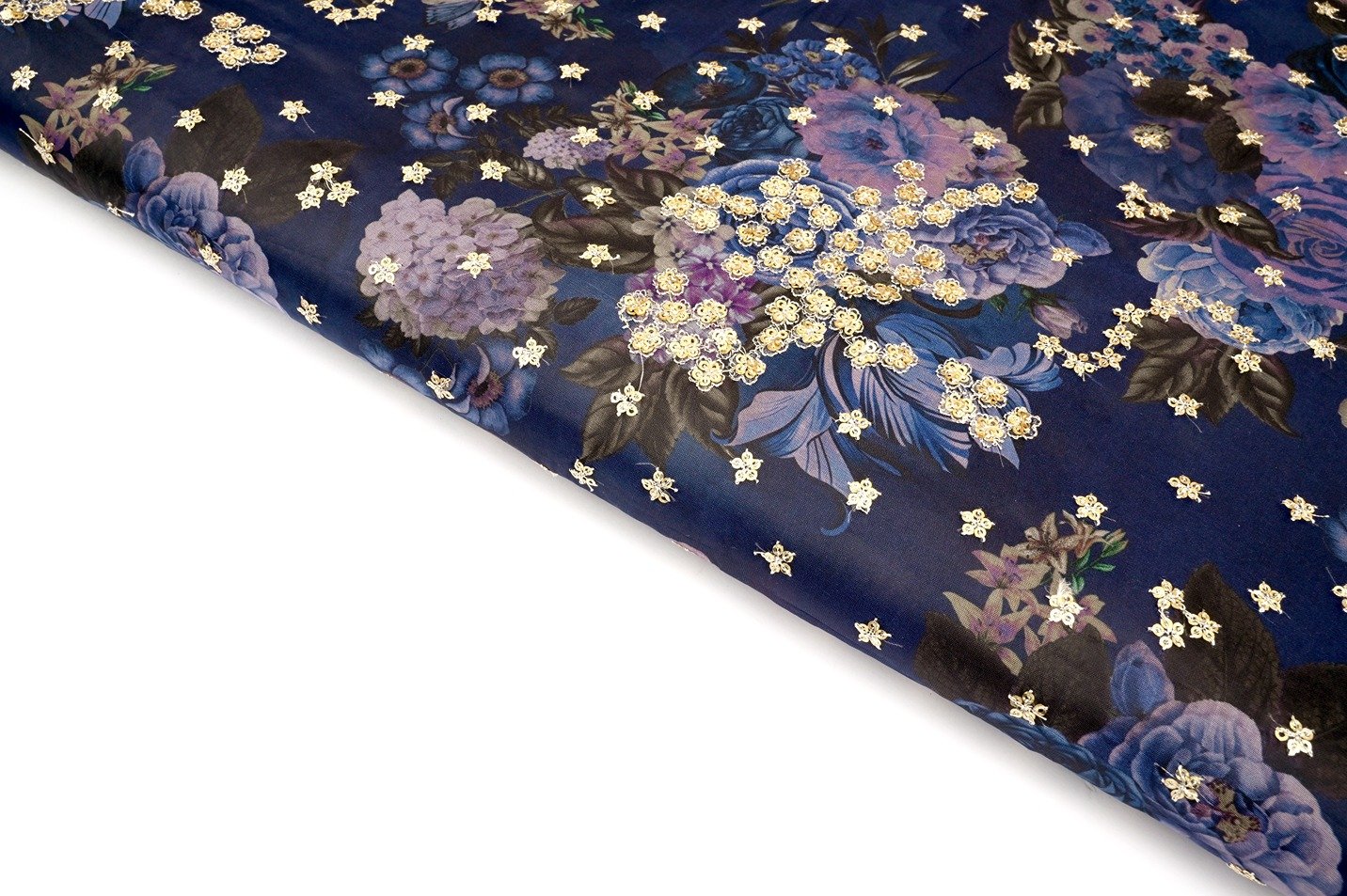 DIGITAL FLORAL MOTIVE WITH METALIC ALLOVER ZAAL PATTERN