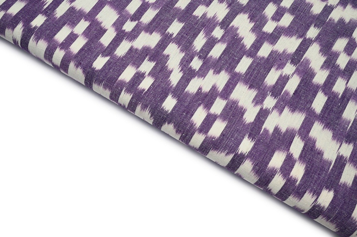 WISTERIA PURPLE COLOR GREY GEOMETRIC CHAIN PATTERN MERSERISE COTTON IKKAT FABRIC