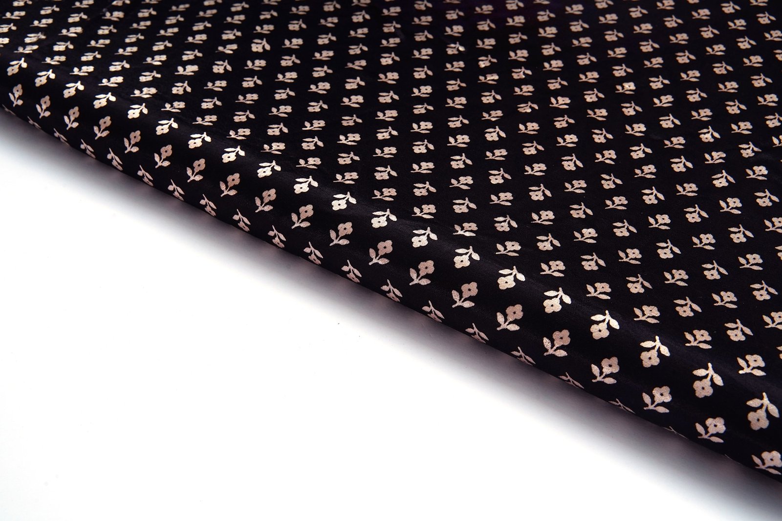 Z BLACK COLOR CREAM FLOWER MOTIF GAJI SILK PRINT
